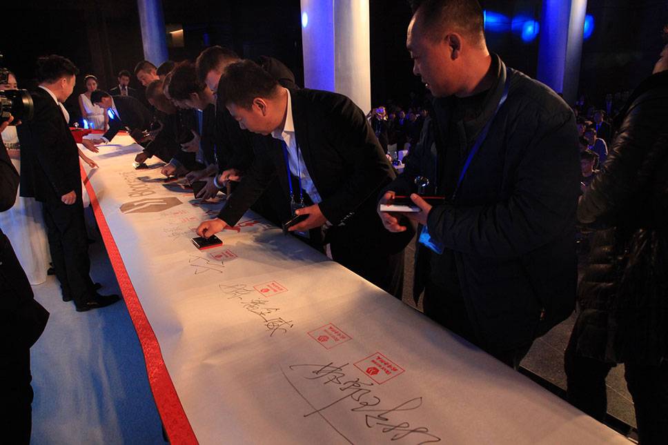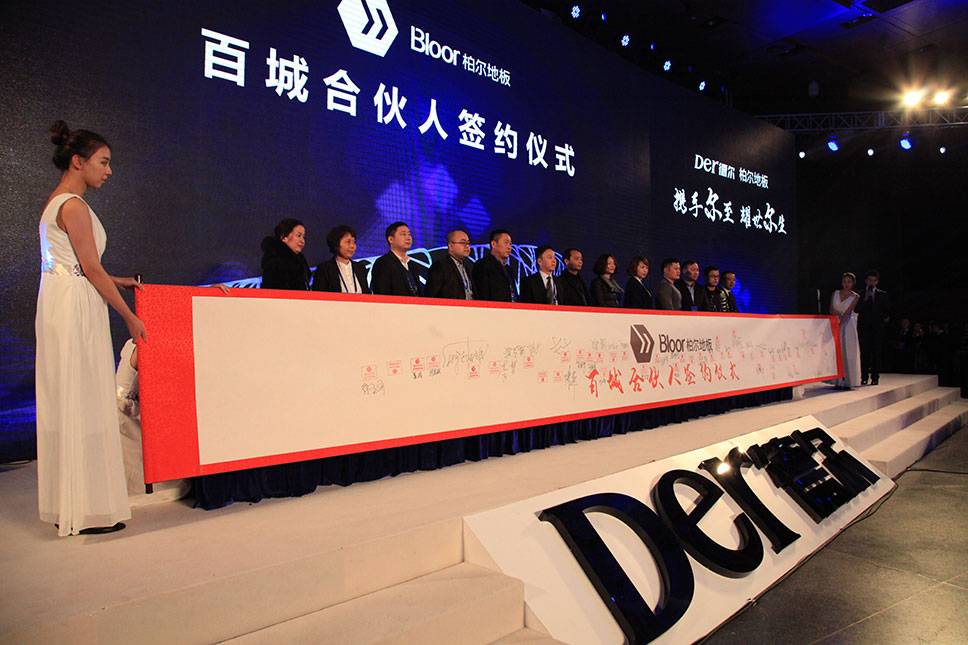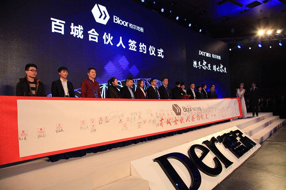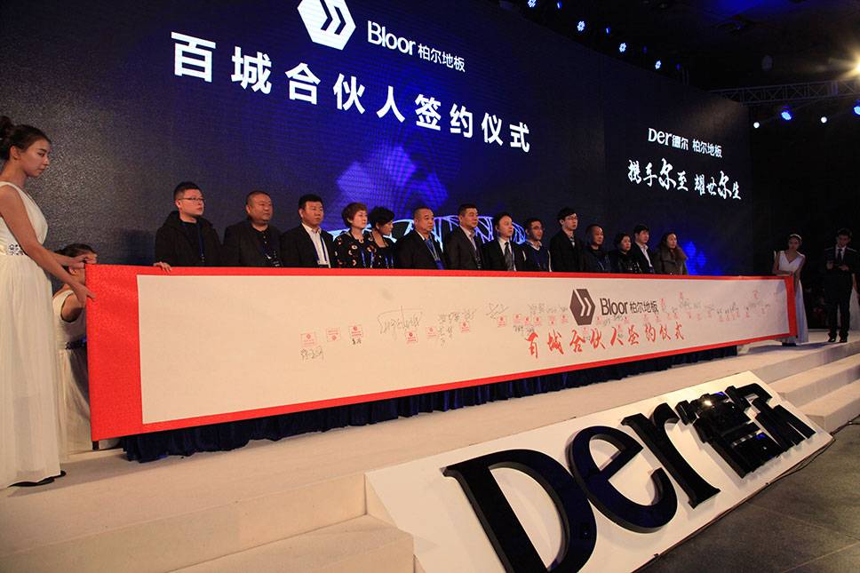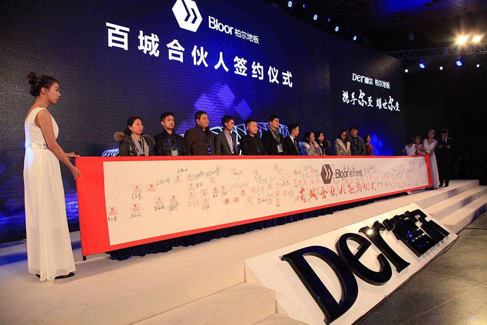 會(huì)上,柏爾地板新簽約的百余名經(jīng)銷商在特制橫幅上簽上自己的大名,正式加入柏爾大家庭,與柏爾一起攜手共贏,共創(chuàng)美好未來(lái)!
