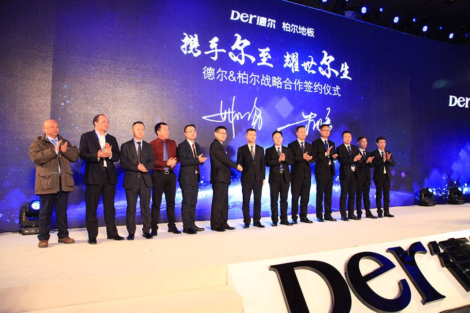 隨著大屏幕上朱總和姚總的簽名逐漸顯現(xiàn)出來(lái),德爾&柏爾戰(zhàn)略合作正式簽約,未來(lái)雙方將整合共享彼此優(yōu)勢(shì)資源,布局大地板產(chǎn)業(yè)之路。