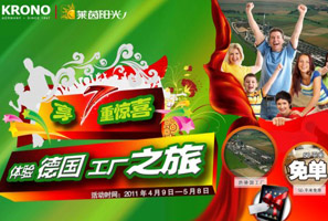 萊茵陽光全國聯(lián)動 購地板贏體驗(yàn)之旅 萊茵陽光地板為答謝消費(fèi)者厚愛,萊茵陽光特邀全國千店聯(lián)動,2011年4月9日—5月8日所有購買萊茵陽光地板的客戶,均可享受7重驚喜,并能抽取幸運(yùn)大獎——“柯諾德國工廠體驗(yàn)之旅”。 <<點(diǎn)擊查看詳情