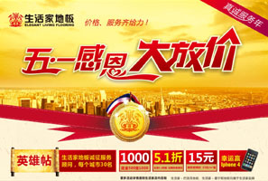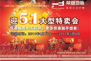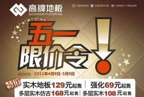 明牌地板五一潔凈特賣、明白消費(fèi) 實(shí)木地板滿50平方米送電磁爐、滿80平方送微波爐、滿120平方米送冰箱;全場驚爆68折;qq預(yù)定并下單客戶,送100元交通費(fèi);顒悠谙蓿2011年5月1-29日 好禮多多! 特價多多! <<點(diǎn)擊查看詳情