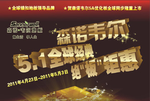森諾韋爾五一全球經(jīng)典絕板火爆來襲 森諾韋爾地板在五一推出的“鉅惠”:凡進(jìn)店即可獲得森諾韋爾精美禮品一份;100元優(yōu)惠券限量送:若活動前到店內(nèi)咨詢均可獲贈100元地板優(yōu)惠券,送完即止,此優(yōu)惠券可在本活動期間沖抵貨款。 <<點(diǎn)擊查看詳情