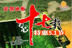 安信地板特惠五重喜特惠5.1節(jié) 凡購買安信實(shí)木地板(特價除外)滿50平方米的老客戶,折后再享受回贈17米踢腳線禮遇。實(shí)木地板169元/平方米起;強(qiáng)化木地板89元/平方米起(12mm超厚);活動期間,訂單即送精美禮品一份。<<點(diǎn)擊查看詳情