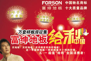 萬套樣板房征集 富紳地板給利全國 活動時間:2011年4月20日-5月8日客戶憑身份證報名,樣板房名額有限,需交200元押金。凡在活動期間訂購富紳品牌實(shí)木地板產(chǎn)品的客戶均可以享受到富紳八大給力大禮。 <<點(diǎn)擊查看詳情