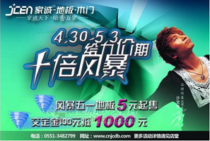 合肥家誠地板五一給力價期 交定金100元抵1000元(8.5折滿30平方并送實(shí)木限量地腳線);風(fēng)暴特價;強(qiáng)化地板58元68元78元,新實(shí)木地板169元(全包價,包強(qiáng)化腳線、摩爾斯門條);一周內(nèi)預(yù)付全款,消費(fèi)滿額送禮品。 <<點(diǎn)擊查看詳情