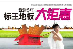 載譽(yù)奧體5年標(biāo)王地板五一大鉅惠 賀標(biāo)王地板連續(xù)五年蟬聯(lián)奧體中心專用地板榮譽(yù)稱號!30平米送環(huán)保購物提籃;40平米送電子秤;50平米送超級神托;51元/平米起(8mm);交全款再降2—10元/平米不等! <<點(diǎn)擊查看詳情