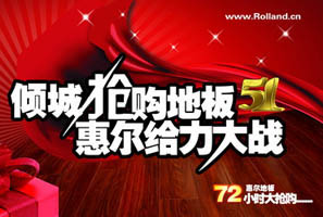 龍森地板五一促銷活動 購地板50平米以下送地板專用拖把一個;購地板滿50平米以上(含50平米)送地板精油二瓶;購地板滿70平米以上送名牌電飯煲一個;購地板滿100平米以上送名牌微波爐一臺。 <<點(diǎn)擊查看詳情