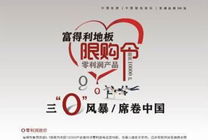 地板也限購——富得利五一“限購令” 富得利集團(tuán)總部5.1期間向全國10000戶家庭特供零利潤高品質(zhì)地板,優(yōu)惠力度史無前例;活動前期只接受消費(fèi)者預(yù)定,凡提前到富得利地板專賣店交納200元誠意金的客戶,均可享受集團(tuán)特供價。 <<點(diǎn)擊查看詳情