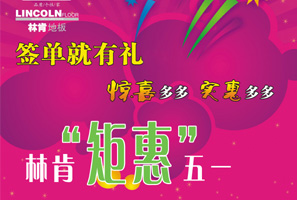 林肯地板“矩惠”五一 實(shí)惠才是硬道理 活動期間預(yù)交訂金100元即可多倍抵用,最高抵用700元;全場5.8折起;活動期間訂單客戶均可獲贈林肯專用腳墊一個;購買林肯地板80平米以上憑訂金條可抵用500元貨款。 <<點(diǎn)擊查看詳情