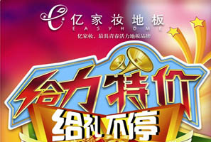 億家妝給力特價給禮不停 活動期間全國各地億家妝地板專賣店購專利產(chǎn)品白領(lǐng)麗人系列價格直達(dá)底線,隨贈價值598元白領(lǐng)麗人系列專供禮品蠶絲被一床;定單即送價值68元特制億家妝廚衛(wèi)伴侶一套。 <<點(diǎn)擊查看詳情