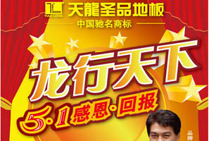 天龍圣品地板五一真情大回饋 是購買地板都有機(jī)會獲得意想不到的驚喜,五一活動期間,部分限量強(qiáng)化復(fù)合地板跌破冰價,勁爆79元/㎡!實(shí)木及實(shí)木復(fù)合地板超低的折扣,讓你不得不懷疑自己的雙眼。萬人淘寶,火爆直銷。 <<點(diǎn)擊查看詳情