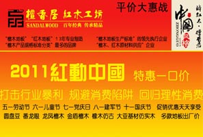 檀香居地板全國惠民行動 火熱進(jìn)行中 五一特供地板51元/㎡,限時限量搶購!低碳樂享3:活動當(dāng)日光臨現(xiàn)場的顧客,來就送檀香居精美小禮品!番龍眼實(shí)木地板(910*122),裸板特惠價:151元/平方,全包特惠價170元/平方。 <<點(diǎn)擊查看詳情