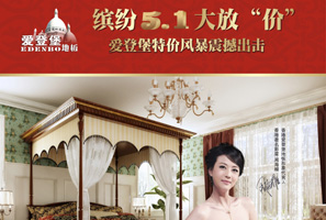 愛登堡地板五一特惠好禮送不停 購買愛登堡地板滿20-30平方者,送食用油一壺;購買愛登堡地板滿31-50平方者,送地墊一個,電飯鍋一臺;凡在活動期間內(nèi):8801、8802、8806、8807、8818以上型號下調(diào)4元/平方特價讓利。 <<點(diǎn)擊查看詳情