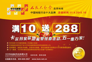 卡爾瑪家居地板壁紙喜連動 五一惠萬家 活動期間,搶購地板送卡爾瑪家居高檔壁紙!百I地板送壁紙”——卡爾瑪家居地板壁紙喜連動,五一惠萬家活動?柤揖有缕飞鲜腥珖策B動,全球同步上市,打造地?zé)岬匕宓谝黄放啤? <<點(diǎn)擊查看詳情