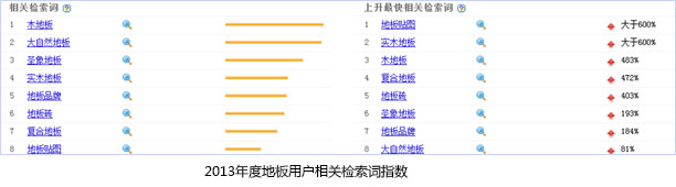 從百度"地板"相關(guān)檢索詞統(tǒng)計(jì)表可以看出,主要分為兩類: