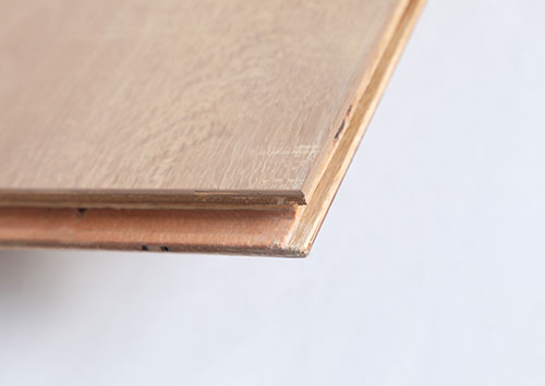 小編在拼接后的兩塊地板間灑上水,待靜置半小時(shí)后再擦干,地板拼接處無明顯滲水,拆開后亦無水漬浸入,整體地板依舊平整。紅木枋科技新實(shí)木地板采用3+9+3獨(dú)特縱橫交錯(cuò)的結(jié)構(gòu),使得地板具有更好的穩(wěn)定性能,也讓地板的防水防潮性能更加優(yōu)異。